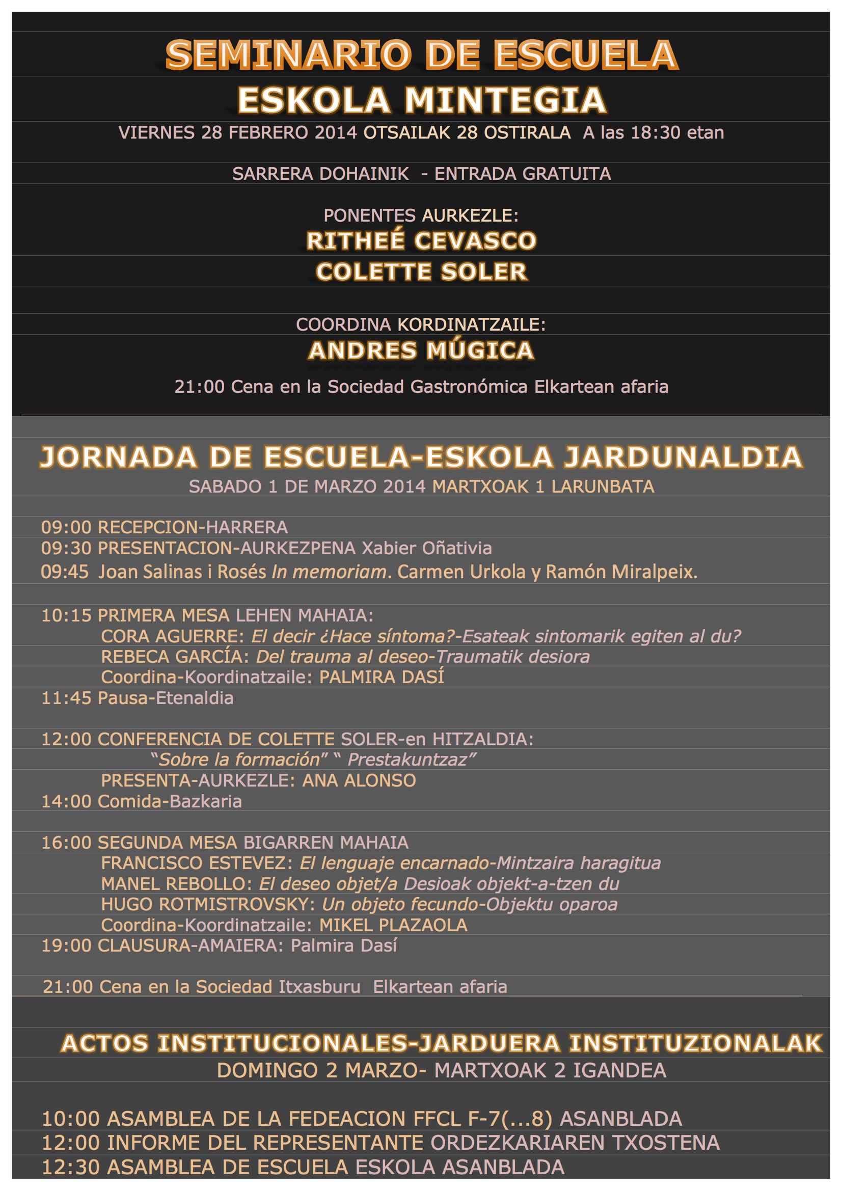 Pero si en la época del 57-58, el padre, el significante del nombre del padre, será la causa de la castración ya no será lo mismo en el seminario de La angustia en los años 62-63. Será una solución. En el origen el deseo, como deseo del padre y la ley son la misma cosa.